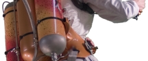 The Jetpack evo NT consists of three pressure vessels, placed at the pilot's back. These three pressure vessels contain gas and liquids needed as fuel for the rocket propulsion elements of the Jetpack. The back pack rocket is based on a hydrogen peroxide powered engine, which is based on the decomposition reaction of hydrogen peroxide.